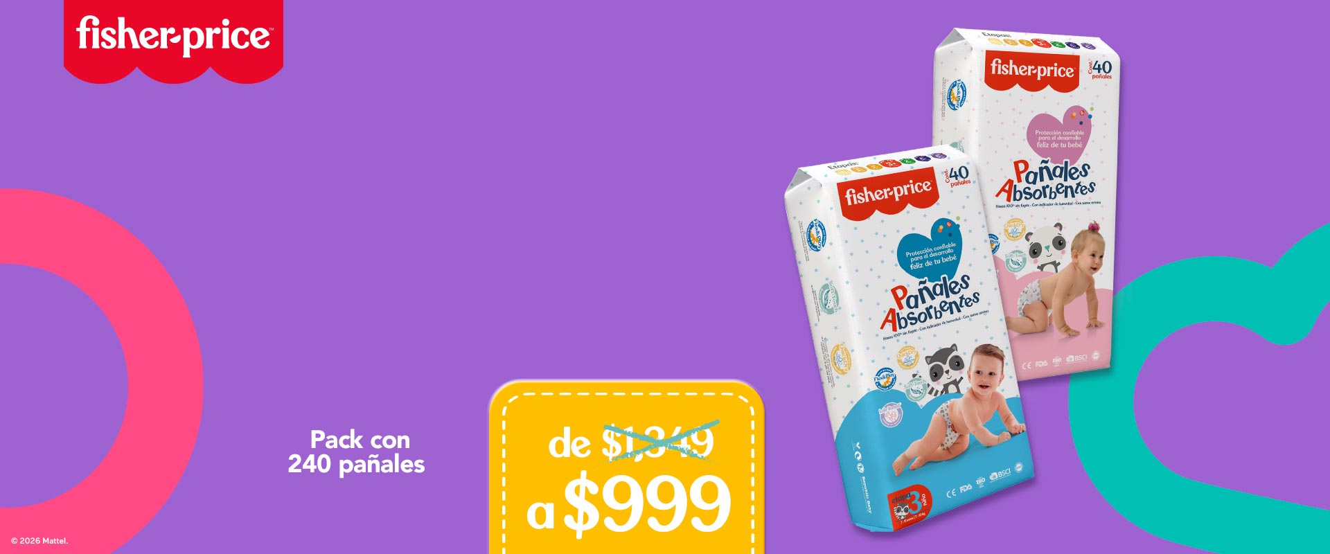 Ahorra con más pa–ales Fisher Price - 3 Pack Recien Nacido + 3 pack toallitas