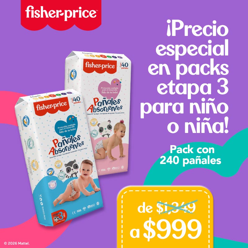 Ahorra con más pa–ales Fisher Price - 3 Pack etapa 3 ni–o + 3 pack toallitas